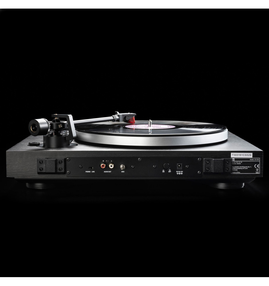 Plinta gramofonu CS 529 została wykonana z płyty MDF, a wewnątrz jego nóżek znajduje się absorber wibracji wykonany z elastomeru. Dodatkowo posiada on zdejmowaną osłonę przeciwpyłową. Jego talerz z solidnymi łożyskami i szpindlem z hartowanej stali w mosiężnej tulei wykonano poprzez precyzyjny odlew ciśnieniowy z aluminium.