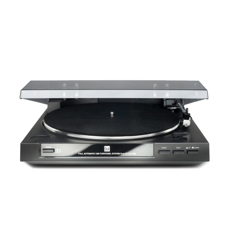 DUAL DT-210 to gramofon automatyczny wysokiej jakości o podwójnej funkcjonalności, który pozwoli cieszyć się analogowym dźwiękiem z czarnej płyty, a także przeniesie ulubione nagrania do praktycznych plików cyfrowych.