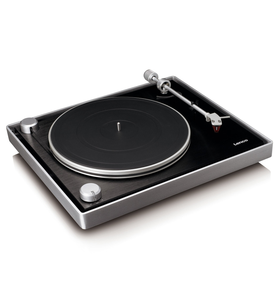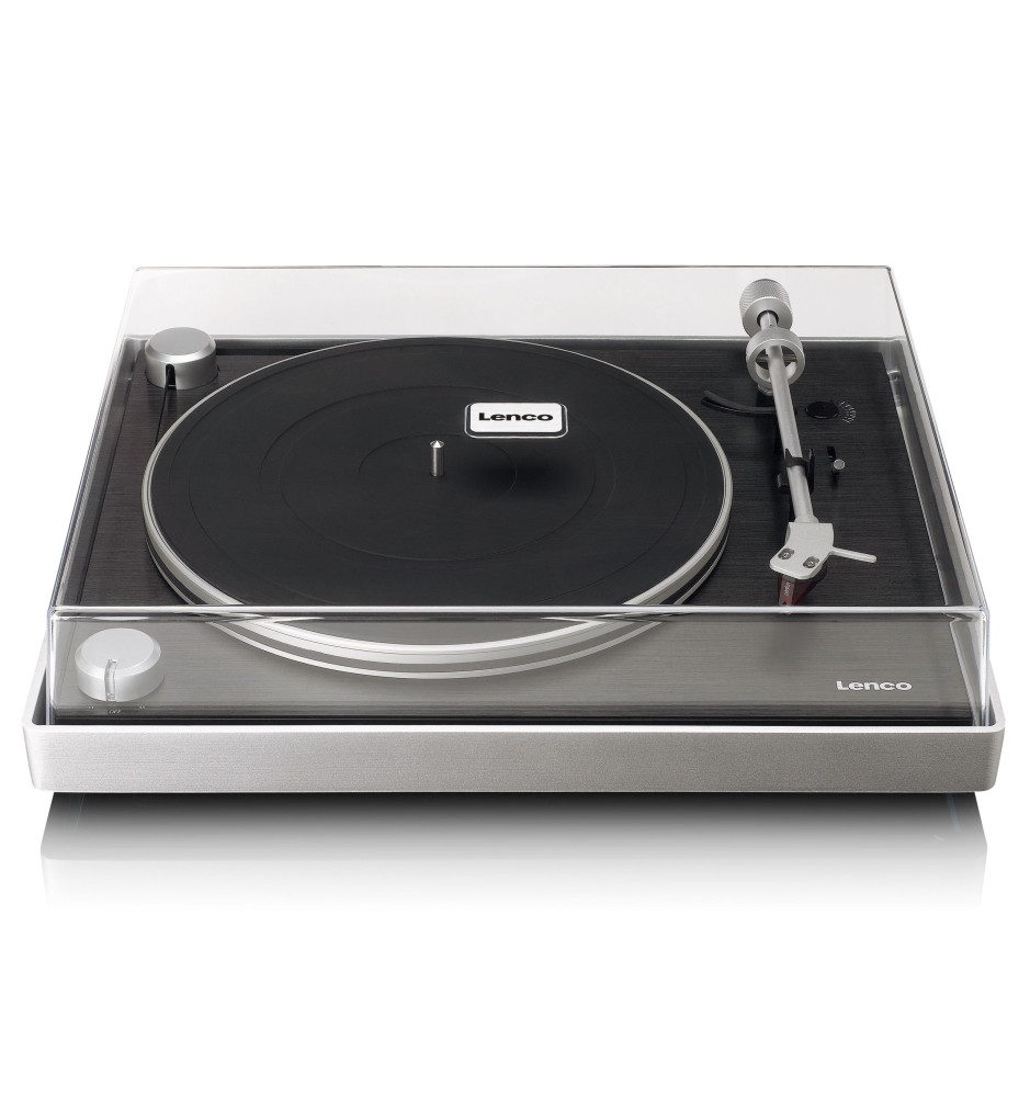Gramofon Lenco L-455BK wyposażony jest w widoczny napęd paskowy, który nie tylko zapewnia stabilne obroty talerza, ale również dodaje urządzeniu unikalnego charakteru. Przezroczysta pokrywa chroni mechanizm przed kurzem, jednocześnie eksponując jego nowoczesny design. Solidna plinta wykonana ze szczotkowanego aluminium nie tylko zwiększa trwałość gramofonu, ale również nadaje mu elegancki wygląd.