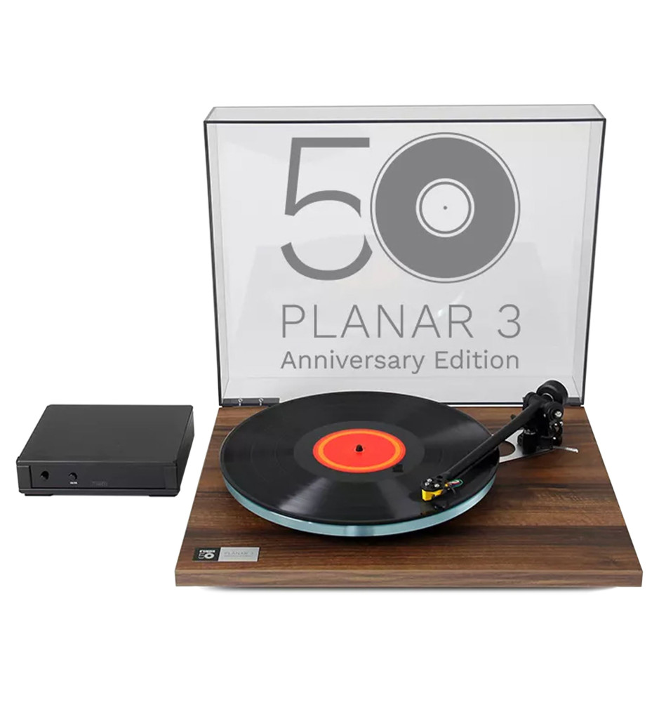 Specjalna rocznicowa edycja z okazji 50-lecia marki Rega wysokiej klasy gramofonu Planar 3 w nowym wykończeniu Orzech Włoski, fabrycznie wyposażona w topową wkładkę Rega Exact, precyzyjne ramię RB330 oraz dołączony zasilacz Neo PSU MK2.