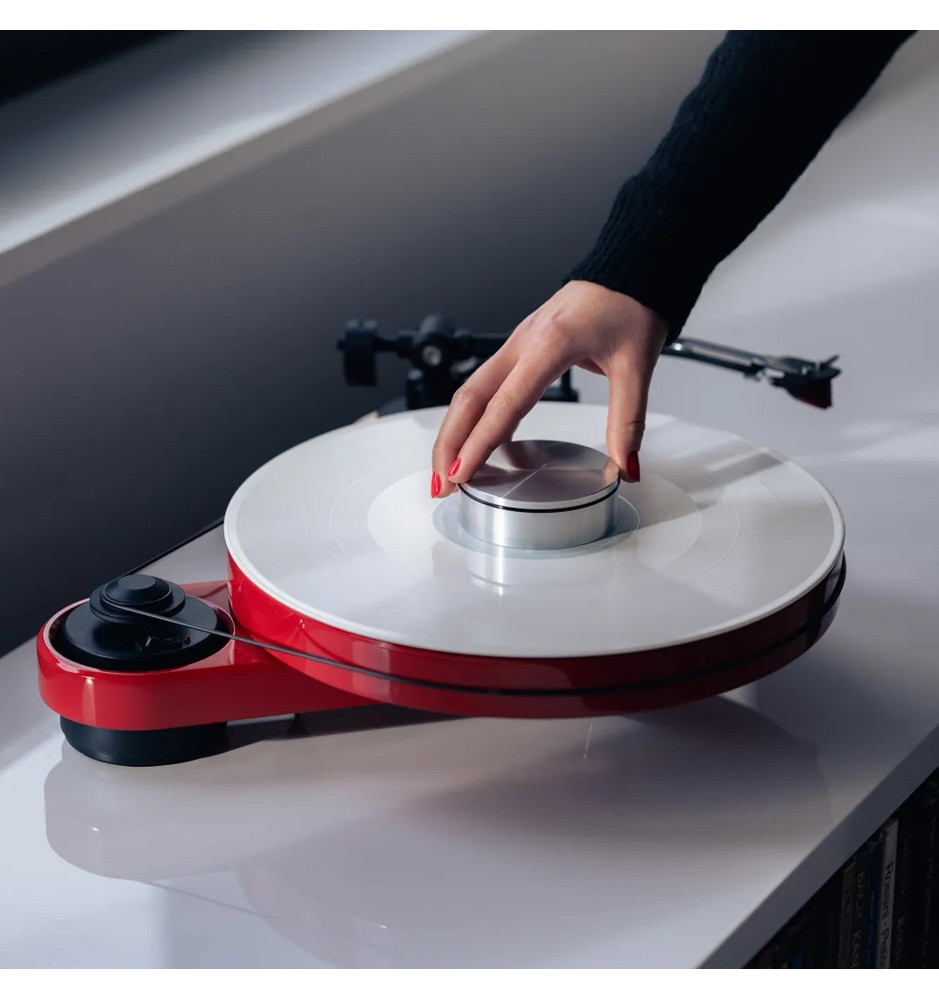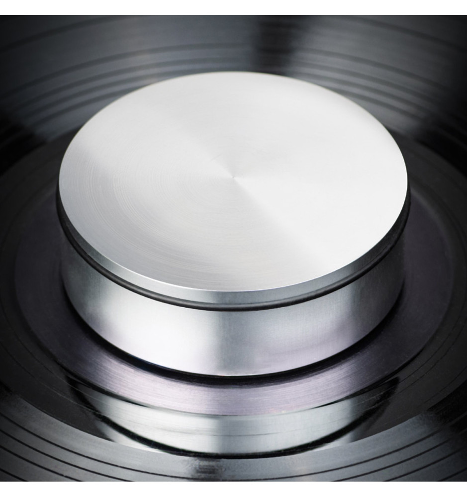 Wyprodukowany w Europie i ważący 315 gramów, aluminiowy docisk stabilizujący do płyt winylowych, zapewniający bezpieczne dopasowanie płyty do powierzchni talerza gramofonu.