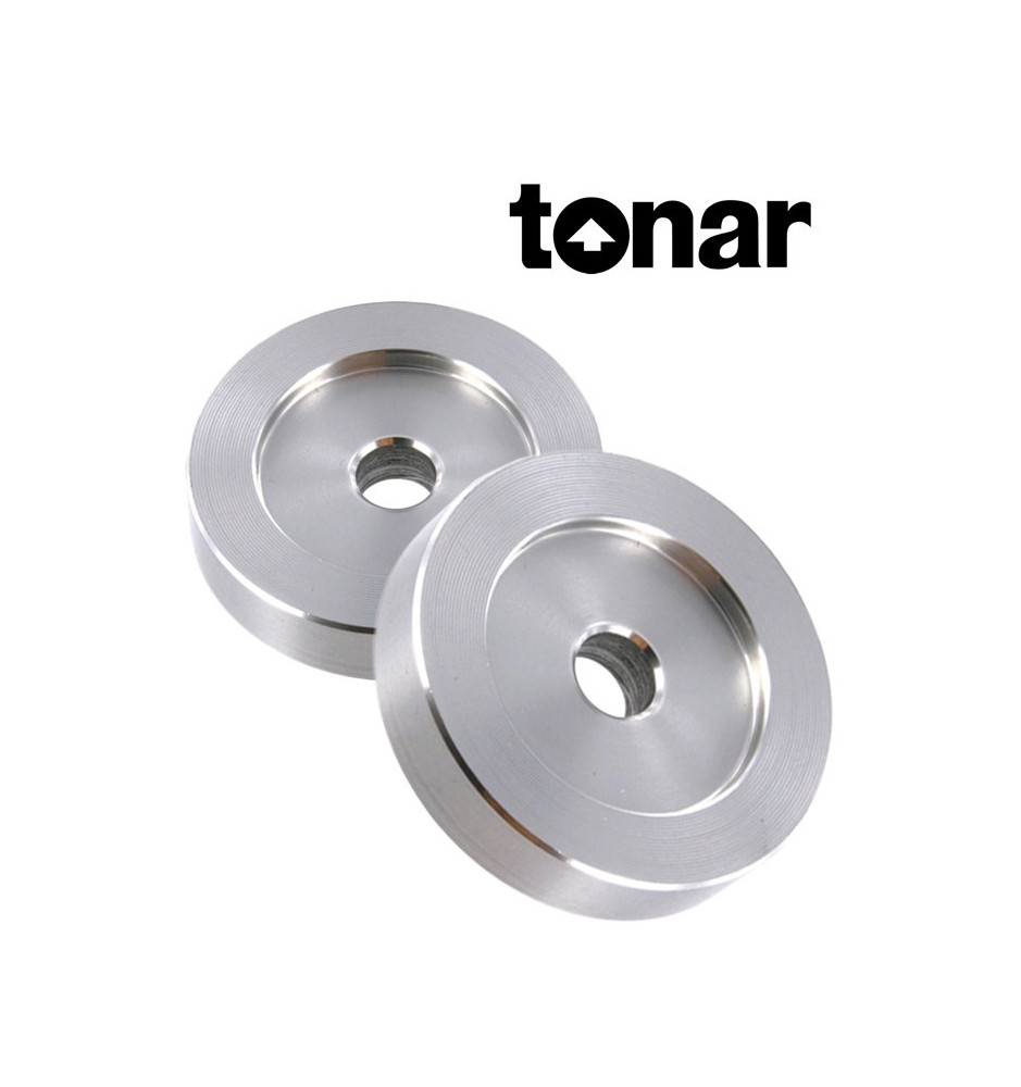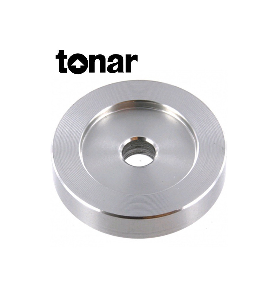 Aluminiowy adapter do singli 45 RPM marki Tonar umożliwiający odtwarzanie starych nagrań, nie posiadających środka płyty.
