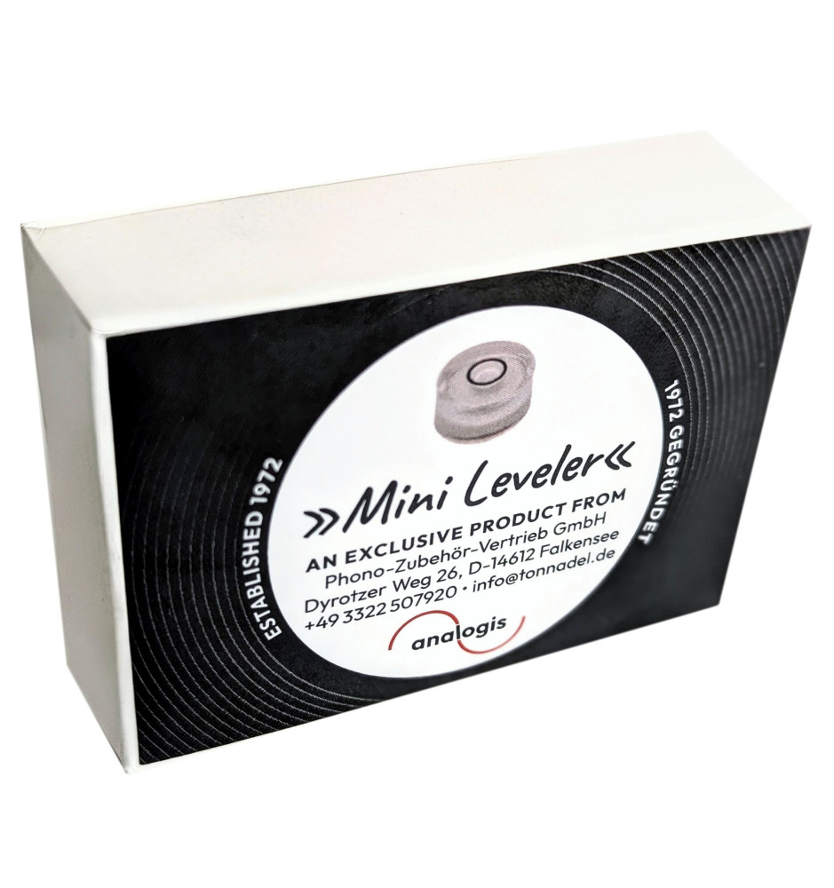 Miniaturowa poziomica wykonana z akrylu o średnicy zaledwie 17 milimetrów, służąca do idealnego wypoziomowania gramofonu lub innych urządzeń Hi-Fi. Dzięki niej prawidłowo ustawisz azymut i VTA, wypoziomujesz gramofon, dokonasz korekcji wkładki lub wyrównasz dowolną powierzchnię.