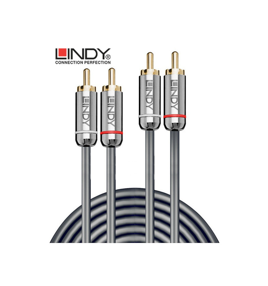 Kabel Lindy 2xRCA-2xRCA idealnie sprawdzi się do połączenia sprzętu Hi-Fi np. rozdzielaczy lub soundbara do telewizora.