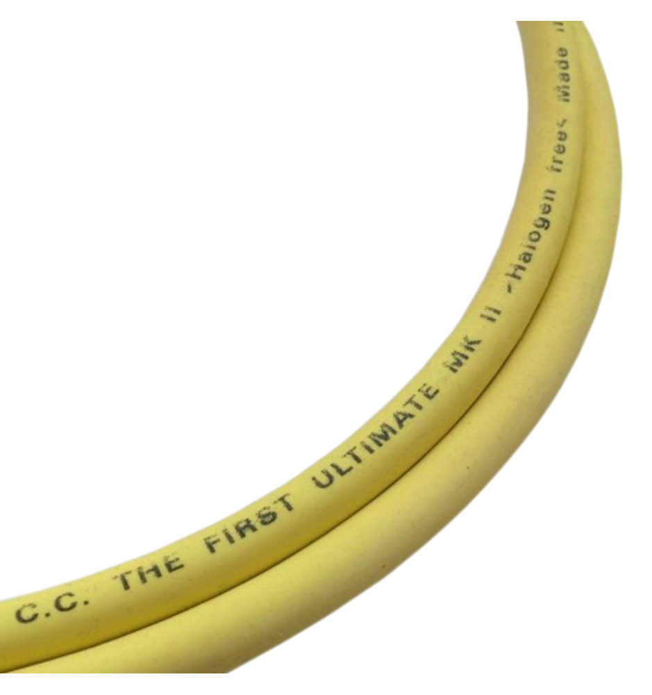 Kabel The First® Ultimate MK II posiada poczwórne ekranowanie nasycone LSC, minimalizujące ryzyko szumów oraz wykorzystuje przewodnik węglowy, wykonany z 12.000 indywidualnie izolowanych żył o średnicy 7 mikronów, który gwarantuje czystą i wyrafinowaną reprodukcję dźwięku. Jego jasno-żółty płaszcz zewnętrzny z materiału Hulliflex® zapewnia doskonałą ochronę oraz długą żywotność.