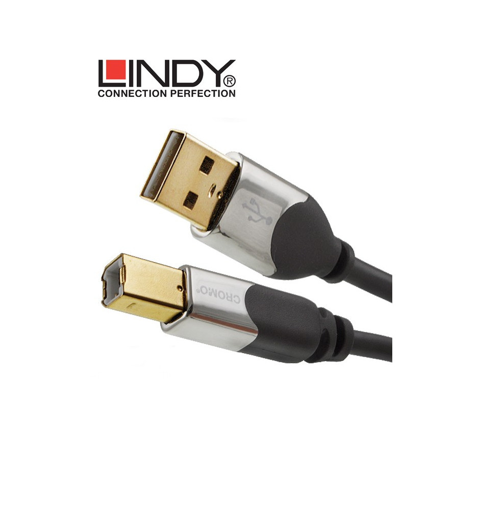 Kabel USB 2.0 A-B Lindy z serii CROMO to wysokiej klasy przewód USB o znakomitej jakości przesyłanego sygnału i eleganckim wyglądzie.