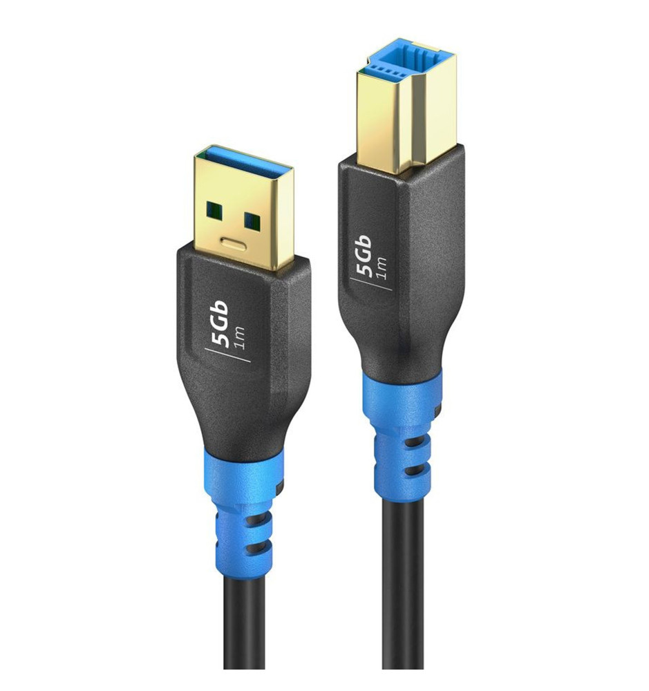 Wysoce elastyczny, profesjonalny kabel USB-A do USB-B w standardzie USB 3.0 (USB 3.2 Gen1x1) umożliwiający transmisję danych z prędkością 5 Gbps.