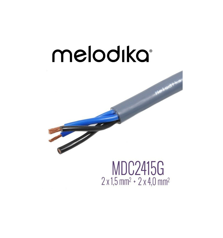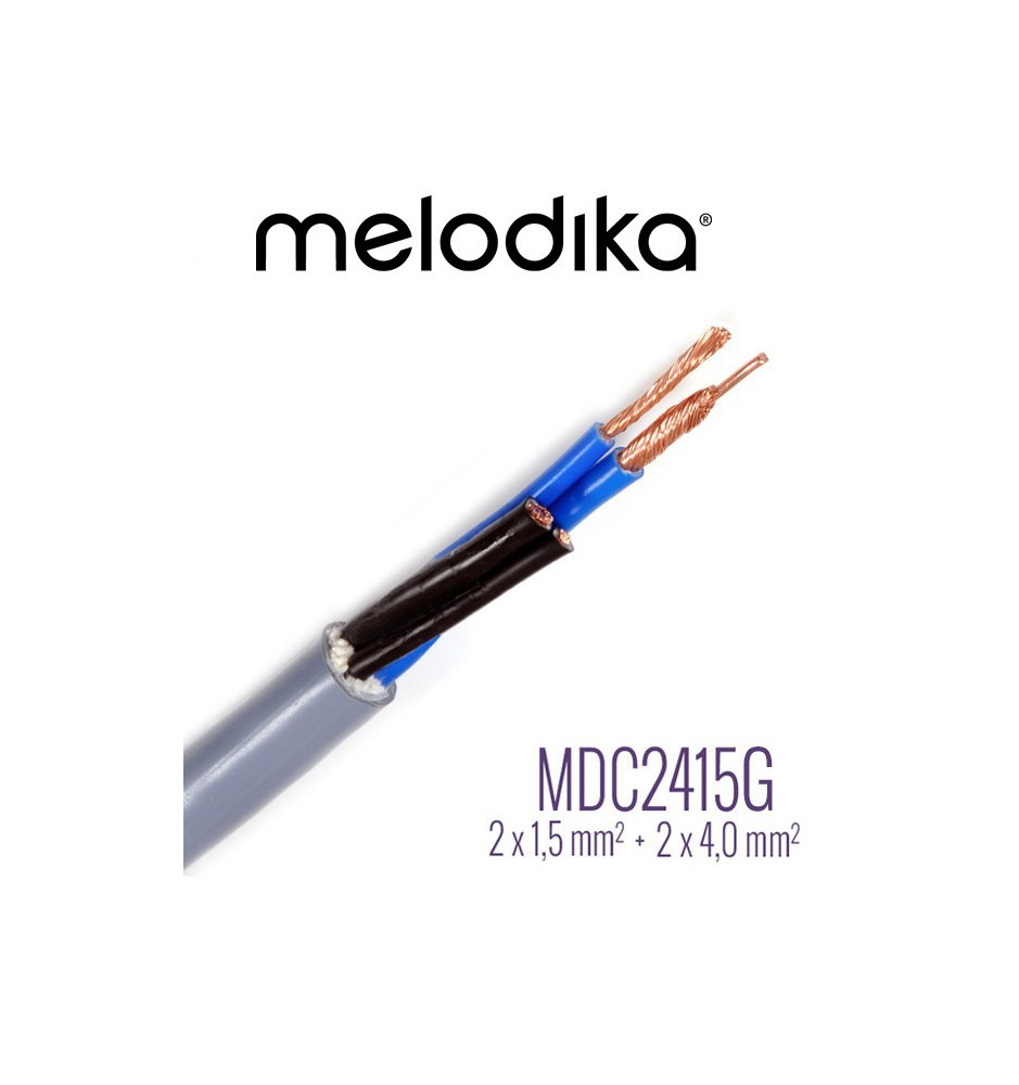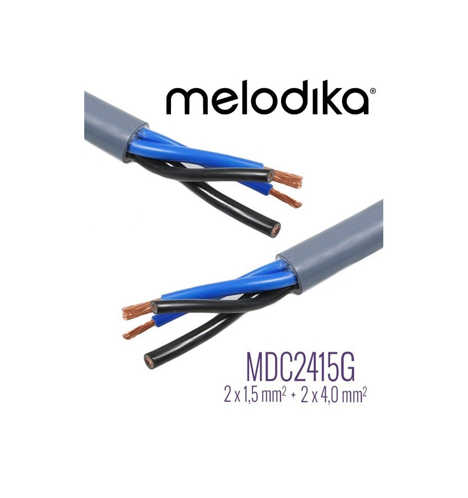 Melodika MDC2415G to wysokiej jakości przewód głośnikowy o przekroju 2x 4mm2 + 2x 1,5mm2 i średnicy zewnętrznej 10 mm, przeznaczony do podłączenia głośników obsługujących technologię bi-wire.