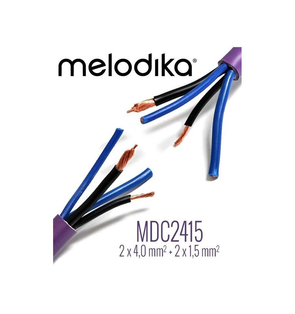 Melodika MDC2415 to wysokiej jakości przewód głośnikowy o przekroju 2x 4mm2 + 2x 1,5mm2 i średnicy zewnętrznej 10 mm, przeznaczony do podłączenia głośników obsługujących technologię bi-wire.