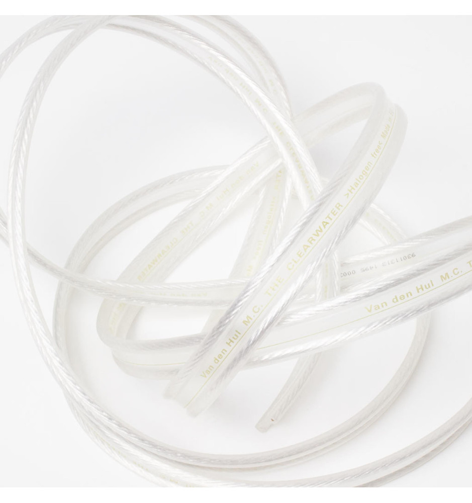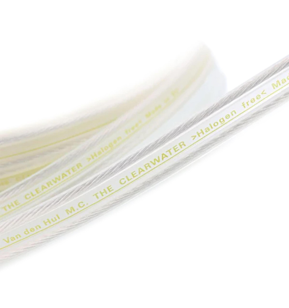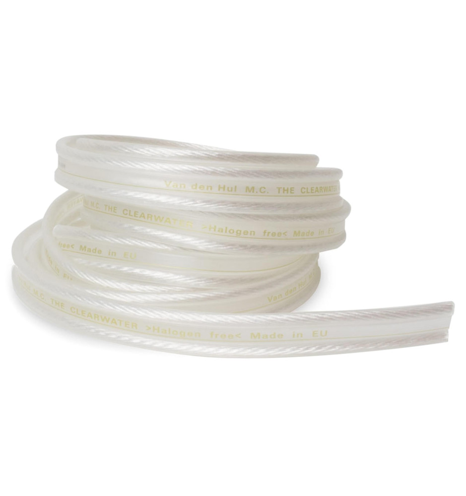 Przewód Van den Hul The Clearwater oferuje "dźwięk czysty jak woda", a jego przeźroczysta osłona zewnętrzna wykonana z materiału Hulliflex® 3 gwarantuje skuteczne ekranowanie, najwyższą trwałość i odporność na szkodliwe warunki. Osłona każdej z żył przewodu posiada inny kształt, umożliwiając łatwą identyfikację polaryzacji.