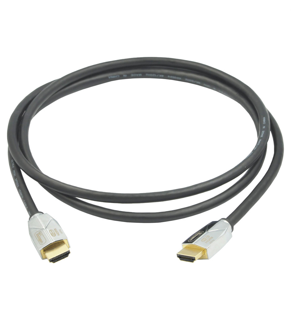 Najwyższej jakości, certyfikowany kabel HDMI 2.1 Ultra High Speed 8K@60Hz / 4K@120Hz o przepustowości 48Gb/s z obsługą 3D, dynamicznym HDR, kanałem Ethernet oraz kanałem zwrotnym eARC.