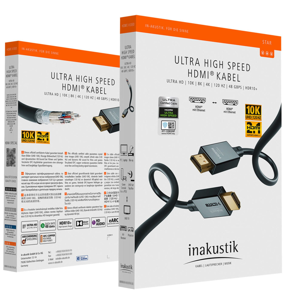 Nagrodzony certyfikatem HDMI Organisation przewód HDMI Ultra High-Speed 2.1 z Ethernet gwarantujący krystalicznie czysty obraz oraz dynamiczny dźwięk HD.