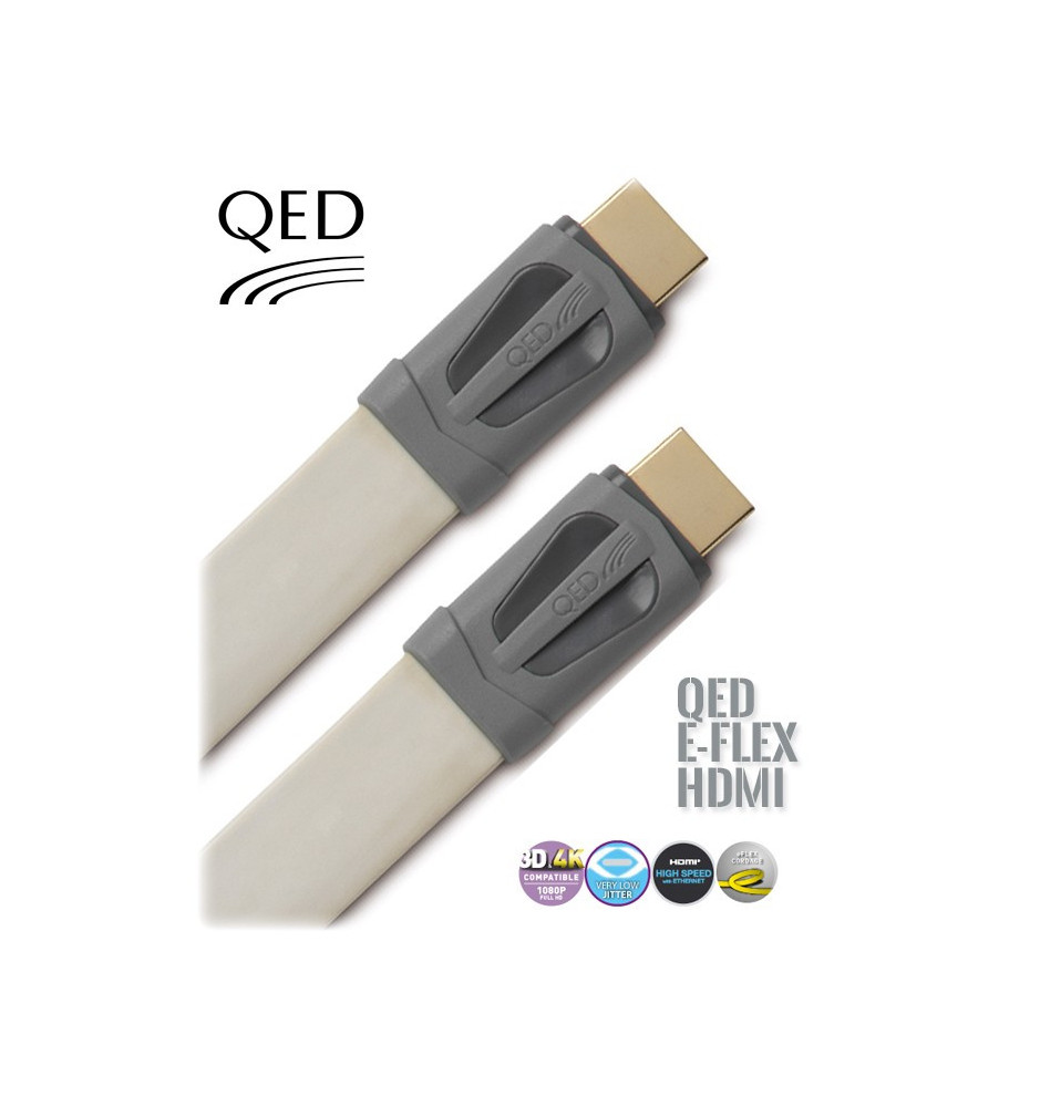 Kabel QE7401 z serii PROFILE EFLEX to wysokiej jakości ultracienki przewód HDMI HIGHSPEED + Ethernet SS, obsługujący rozdzielczość 4K, full-HD oraz technologię 3D, renomowanej marki QED.