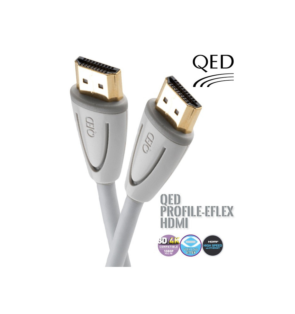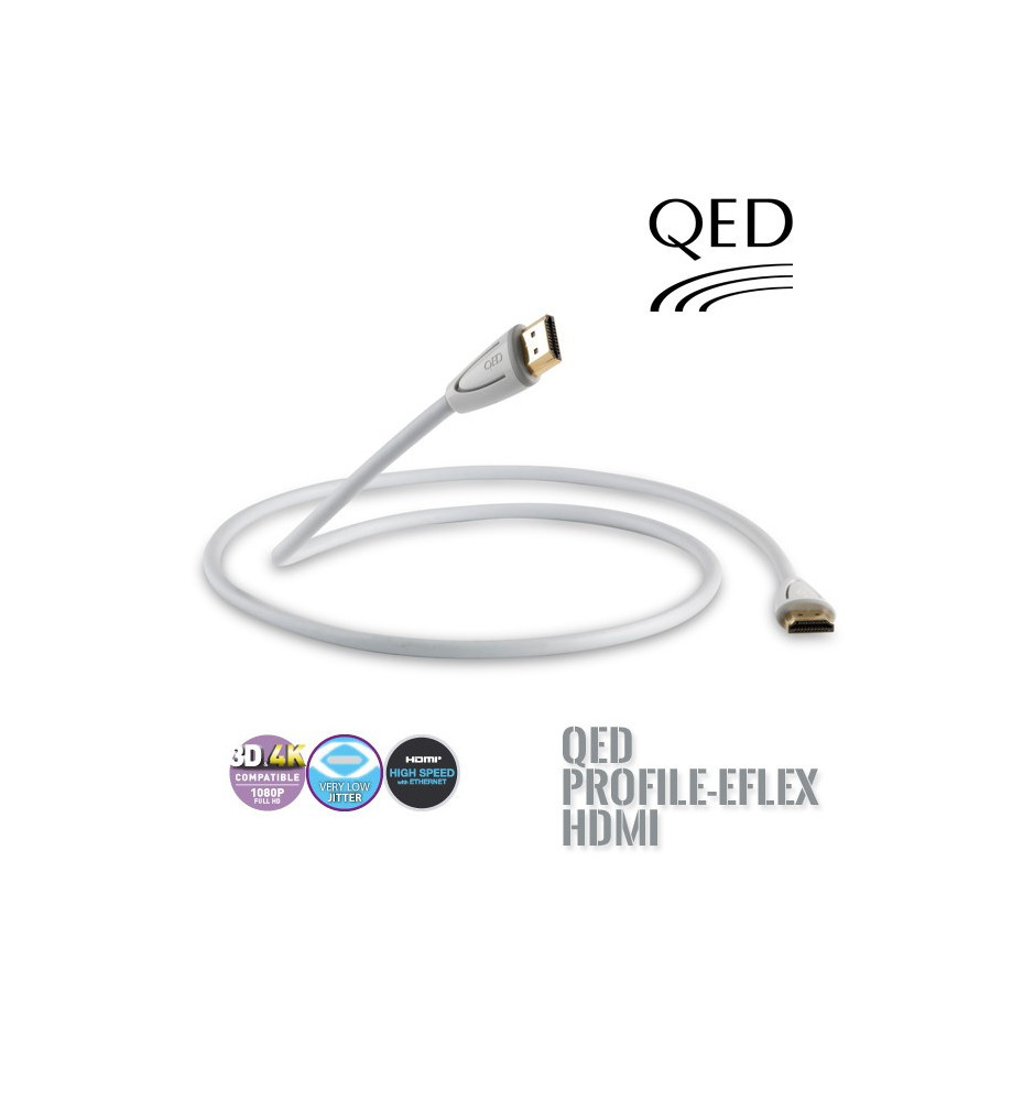 Kabel QE5014 z serii PROFILE EFLEX to wysokiej jakości przewód/kabel HDMI HIGHSPEED + Ethernet SS, obsługujący rozdzielczość 4K, full-HD oraz technologię 3D, renomowanej marki QED.