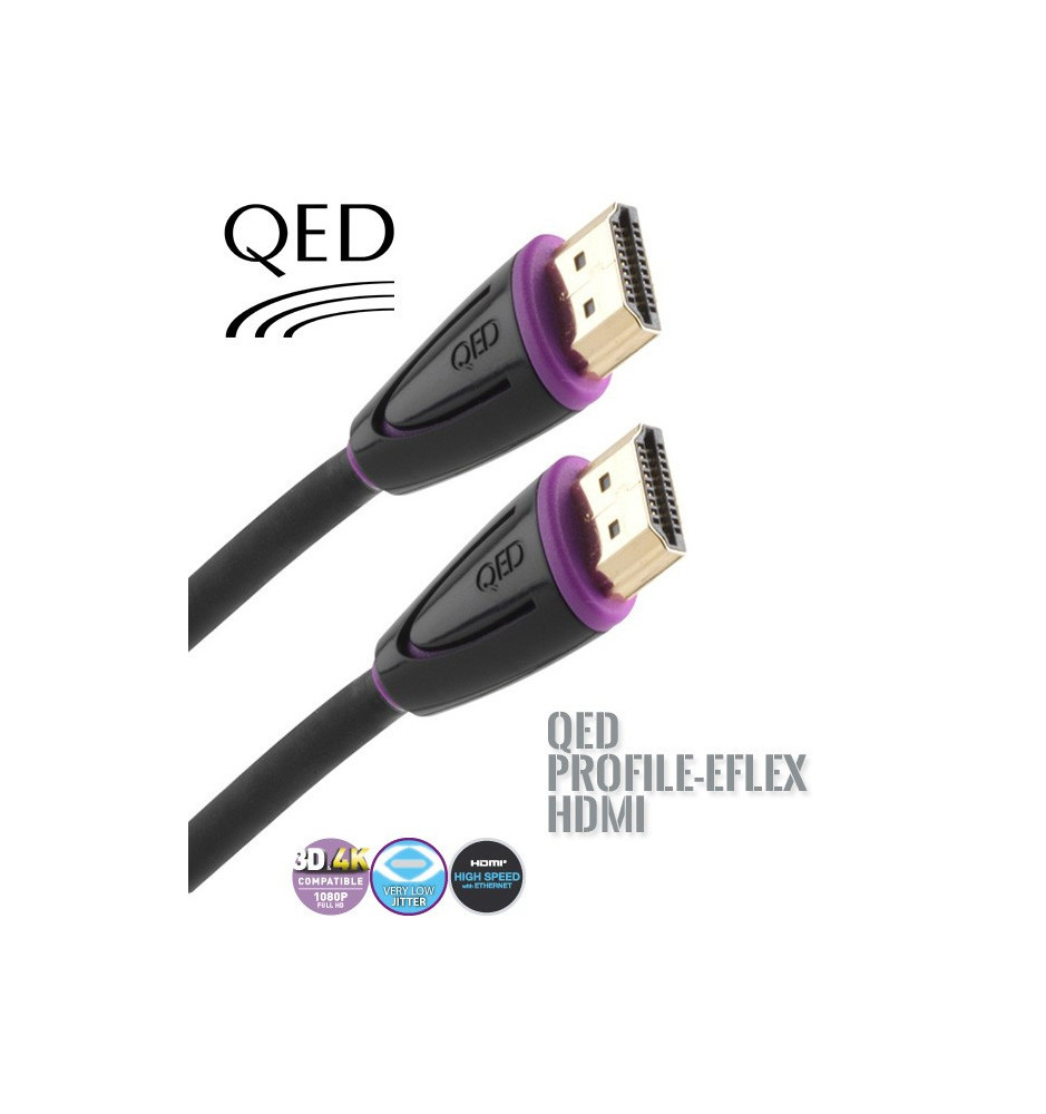 Kabel QE5015 z serii PROFILE EFLEX to wysokiej jakości przewód/kabel HDMI HIGHSPEED + Ethernet SS, obsługujący rozdzielczość 4K, full-HD oraz technologię 3D, renomowanej marki QED.
