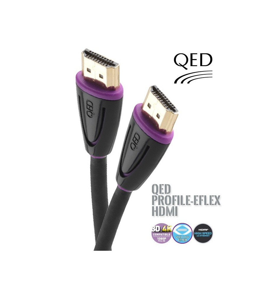 Kabel QE5017 z serii PROFILE EFLEX to wysokiej jakości przewód/kabel HDMI HIGHSPEED + Ethernet SS, obsługujący rozdzielczość 4K, full-HD oraz technologię 3D, renomowanej marki QED.