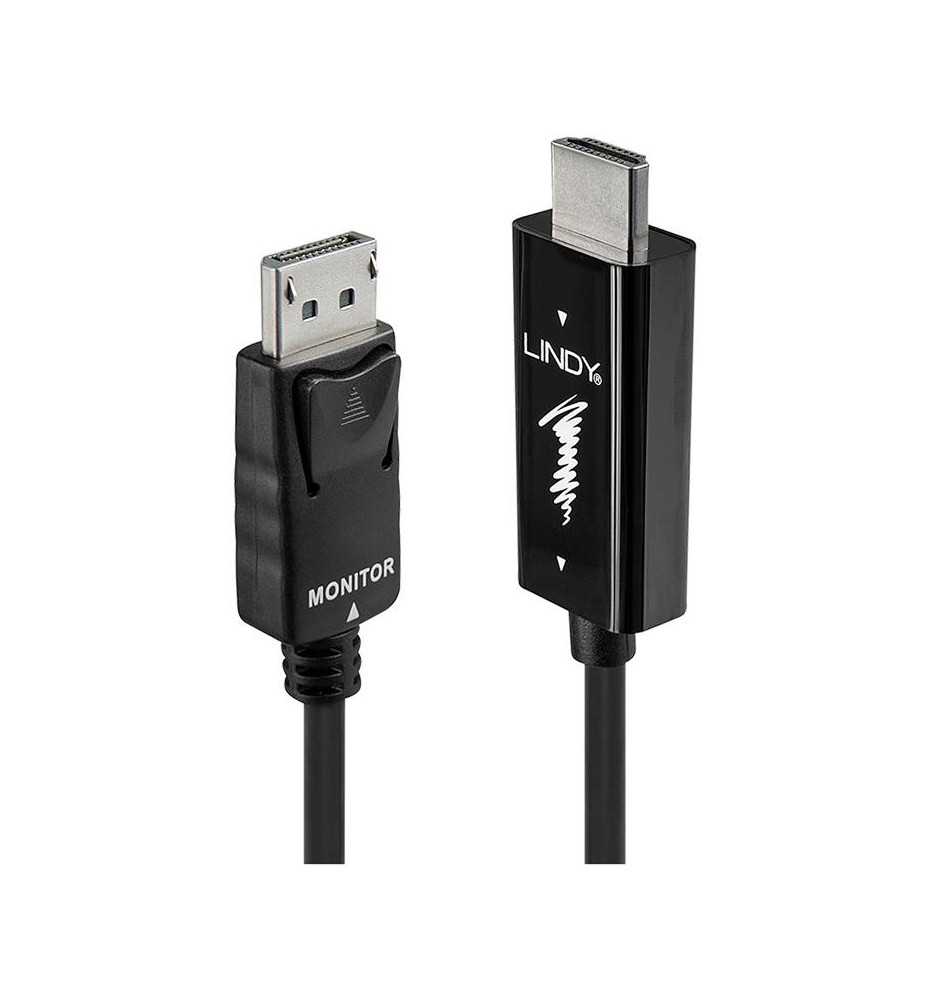 Przewód marki Lindy pozwalający połączyć komputery PC oraz laptopy przy użyciu złącza HDMI do urządzeń wyposażonych w gniazdo DisplayPort (np, monitory).