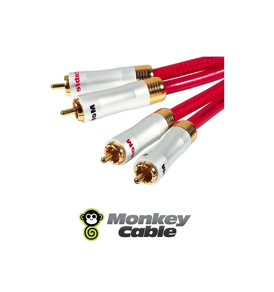 Kabel MonkeyCable umożliwia przesyłanie sygnału audio przy połączeniu np. odtwarzacza CD, tunera lub wzmacniacza. Całość zamknięto w odpornym na uszkodzenia, grubym nylonowym płaszczu.