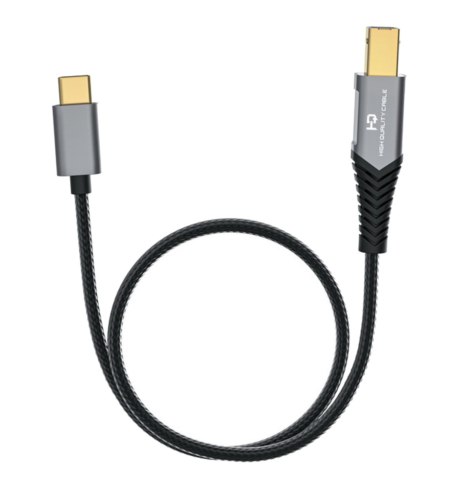 Wysokiej klasy przewód o długości 50 centymetrów, umożliwiający połączenie urządzeń wyposażonych w złącza USB typu B i USB typu C. Zapewnia bezstratną transmisję cyfrowego sygnału audio w jakości High-Res. Specjalnie zaprojektowane, formowane wtryskowo jednoczęściowe złącza zapewniają odporność na zginanie.