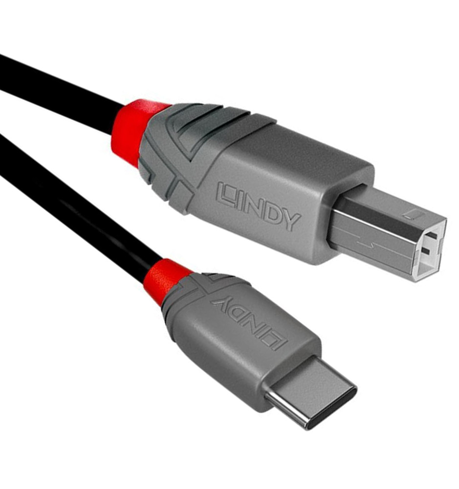 Profesjonalny kabel USB 2.0 typu C do B z kolekcji Anthra Line od Lindy, stanowiący doskonałe rozwiązanie do wysokowydajnych połączeń AV oraz IT.