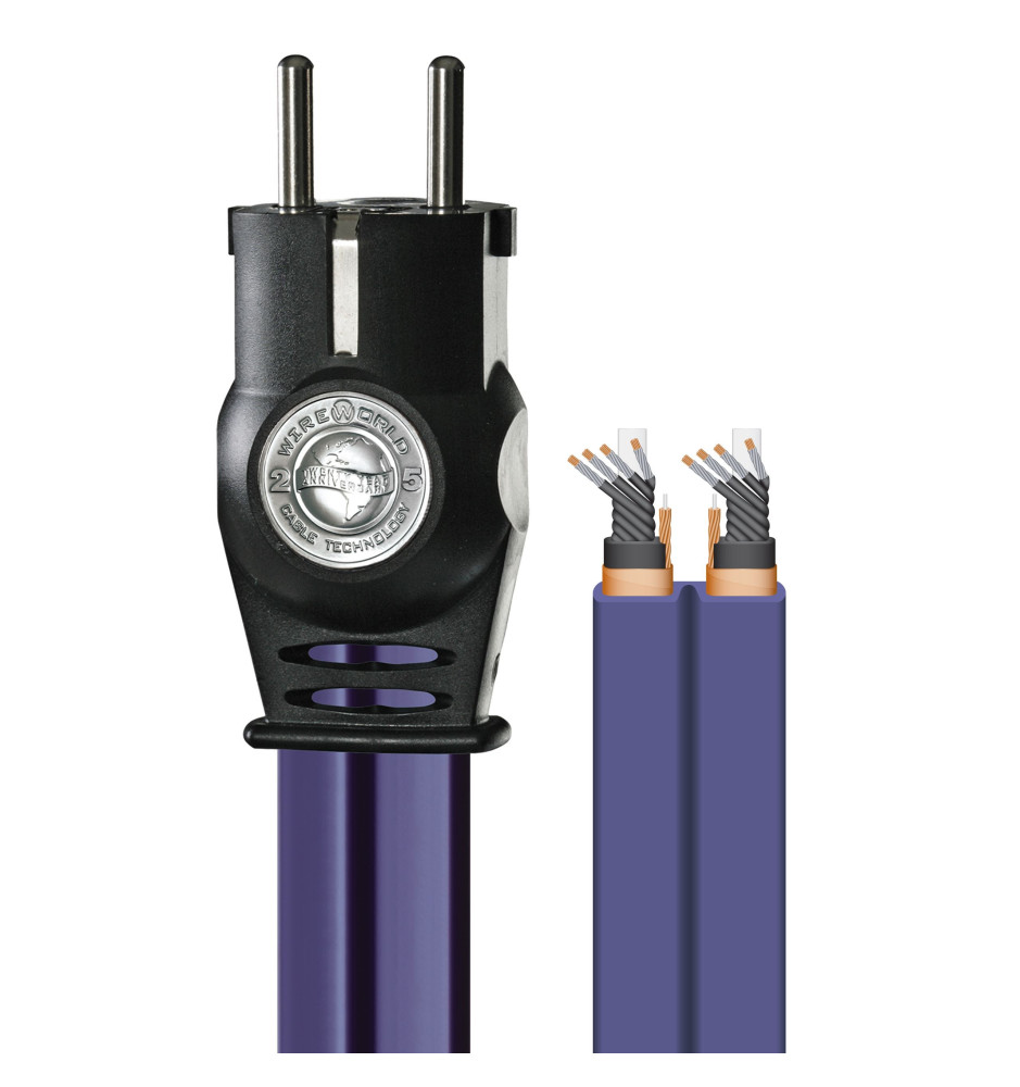 Profesjonalny kabel zasilający ze złączami IEC - Schuko, który dzięki zastosowaniu ulepszonego przewodnika z posrebrzanej miedzi beztlenowej OFC wyraźnie poprawia działanie i brzmienie systemów audio oraz wideo.