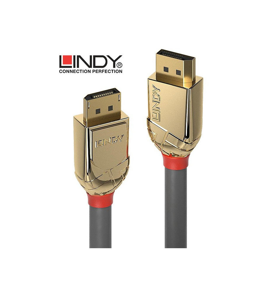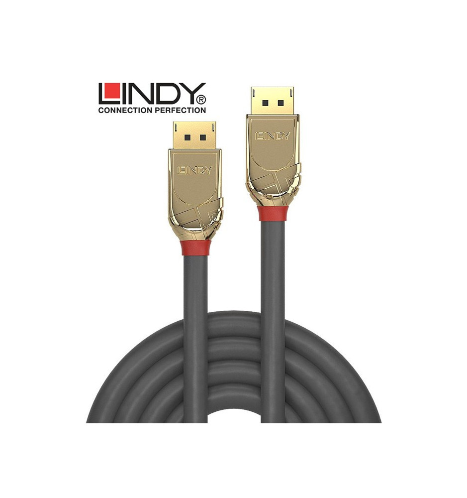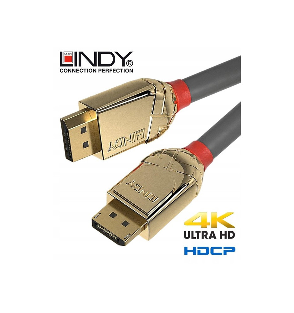 Kabel Display Port 1.2 Lindy z serii Gold Line to wysokiej jakości przewód obsługujący rozdzielczości do 4K 4096x2160 przy 60Hz, a także 4:4:4 10bit, włączając 3D i HDCP, idealnie sprawdzający się jako wysokowydajne rozwiązanie w przypadku połączeń do użytku w najbardziej wymagających środowiskach.