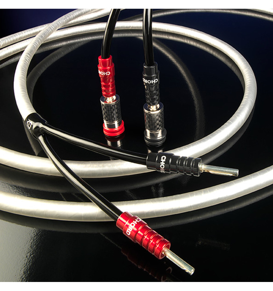 Zestaw dwóch najwyższej jakości kabli głośnikowych ClearwayX od Chord Company, konfekcjonowanych doskonałymi wtykami bananowymi ChordOhmic.