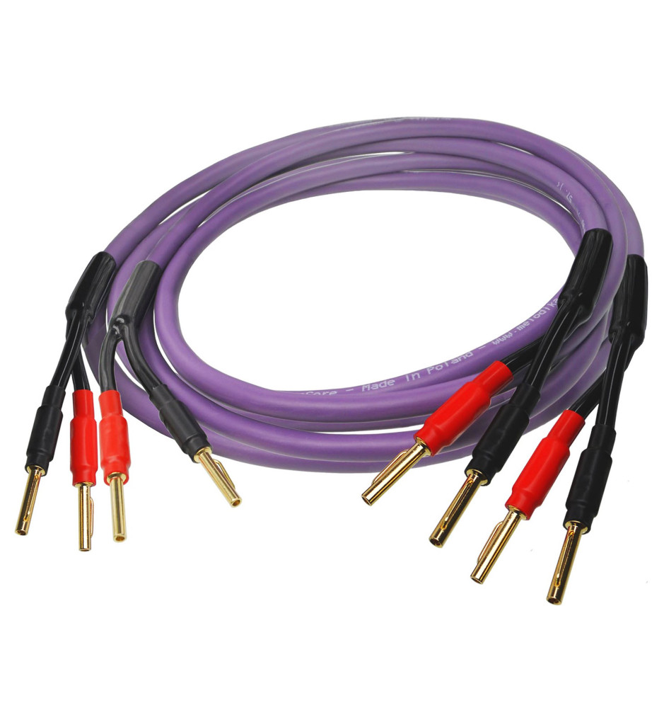 Zakończenie przewodów wykonano z najwyższej jakości wtyków bananowych podwójnie ekranowanych.