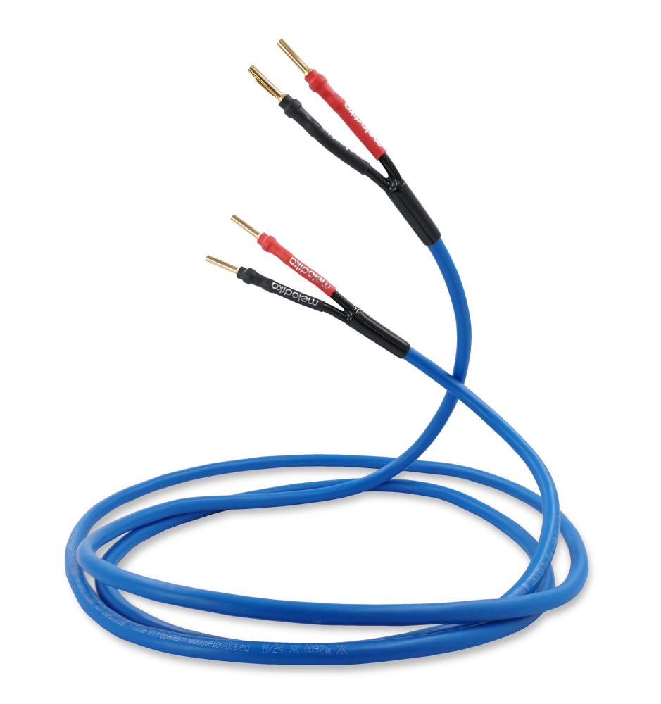 Zestaw dwóch wysokiej jakości kabli głośnikowych z najnowszej serii Sky Blue, wykonanych z miedzi beztlenowej OFC 99,99% klasy 4N o przekroju 2x1,5mm² i konfekcjonowanych pozłacanymi wtykami bananowymi z wykorzystaniem technologii Solid Grip.