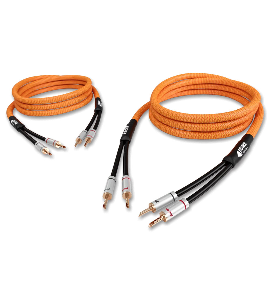Komplet dwóch ręcznie wyprodukowanych we Włoszech i konfekcjonowanych pozłacanymi wtykami bananowymi BFA, podwójnie ekranowanych kabli głośnikowych klasy High-End z technologią redukcji szumów, które gwarantują niezwykle wierne i naturalne brzmienie.
