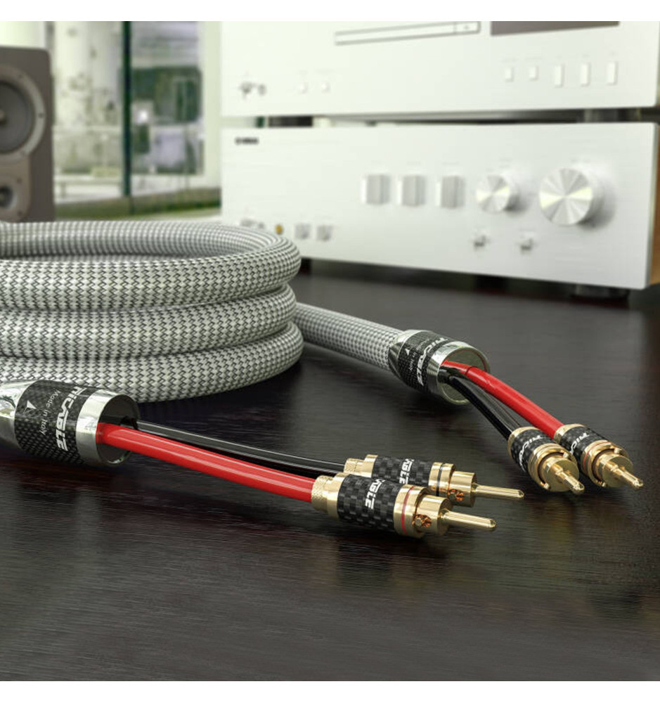 Komplet dwóch wyprodukowanych we Włoszech i konfekcjonowanych pozłacanymi wtykami bananowymi, zaawansowanych przewodów głośnikowych klasy High-End z technologią redukcji szumów, które pozwolą Twojemu systemowi audio rozwinąć pełnię możliwości.
