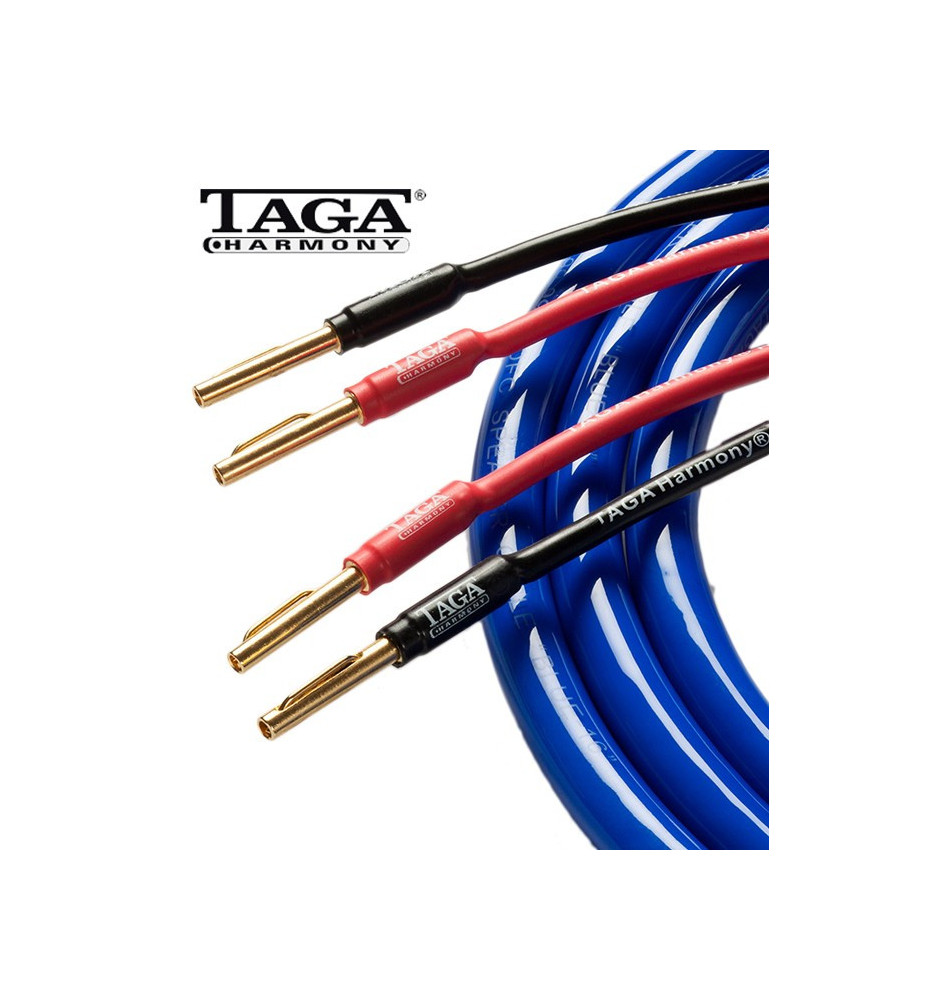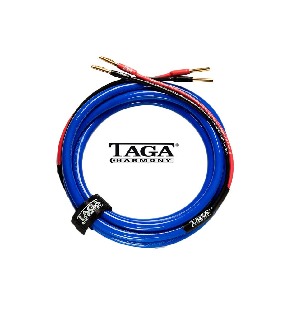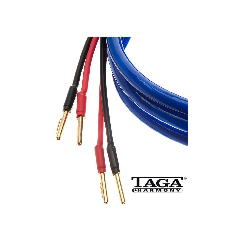 Wielożyłowy kabel głośnikowy Taga Harmony Blue-16 2x2.5m klasy premium przeznaczony do systemów Hi-Fi, zakończony wysokiej jakości wtykami bananowymi.