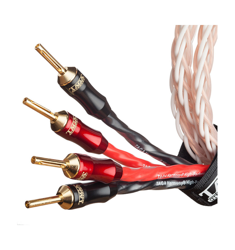 Zestaw dwóch doskonałej jakości kabli głośnikowych Taga Harmony PLATINUM-18-8C o długości 3m. PLATINUM-18-8C jest plecionką wielożyłową wykonaną z czystej miedzi beztlenowej OFC 99.99% zakończoną wysokiej jakości wtykami bananowymi z pozłacanej miedzi.