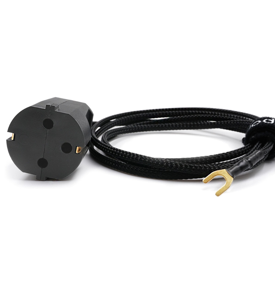 Aby bezpośrednio podłączyć gramofon, przedwzmacniacz gramofonowy czy wzmacniacz do masy, wystarczy podłączyć wtyczkę Schuko kabla Melodika MDG do listwy zasilającej, a następnie podłączyć widły do śruby obudowy wzmacniacza lub śruby uziemienia phono w gramofonie. Prawidłowe podłączenie przewodu MDG eliminuje ryzyko zakłóceń sieciowych, usuwając trzaski i buczenie.