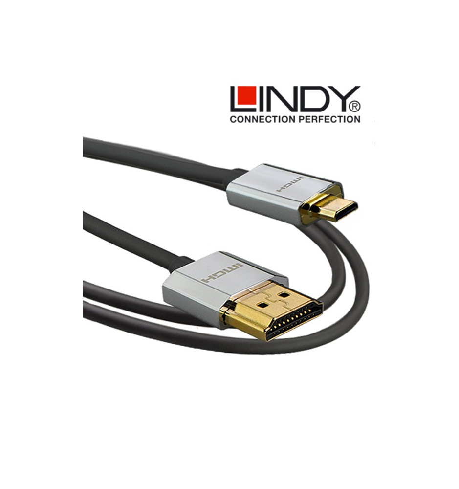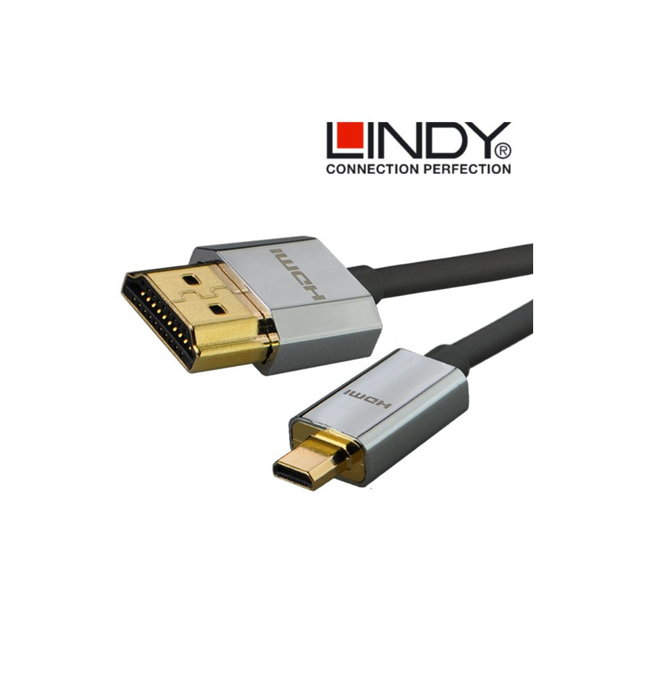 Micro HDMI - HDMI Lindy to najwyższej jakości kabel do połączeń HDMI. Stworzony z myślą najnowszych i najnowocześniejszych rozwiązań audio video. Idealnie sprawdzi się jako kabel łączący urządzenia przenośne wyposażone z złącze Micro HDMI np. aparaty cyfrowe lub kamery.