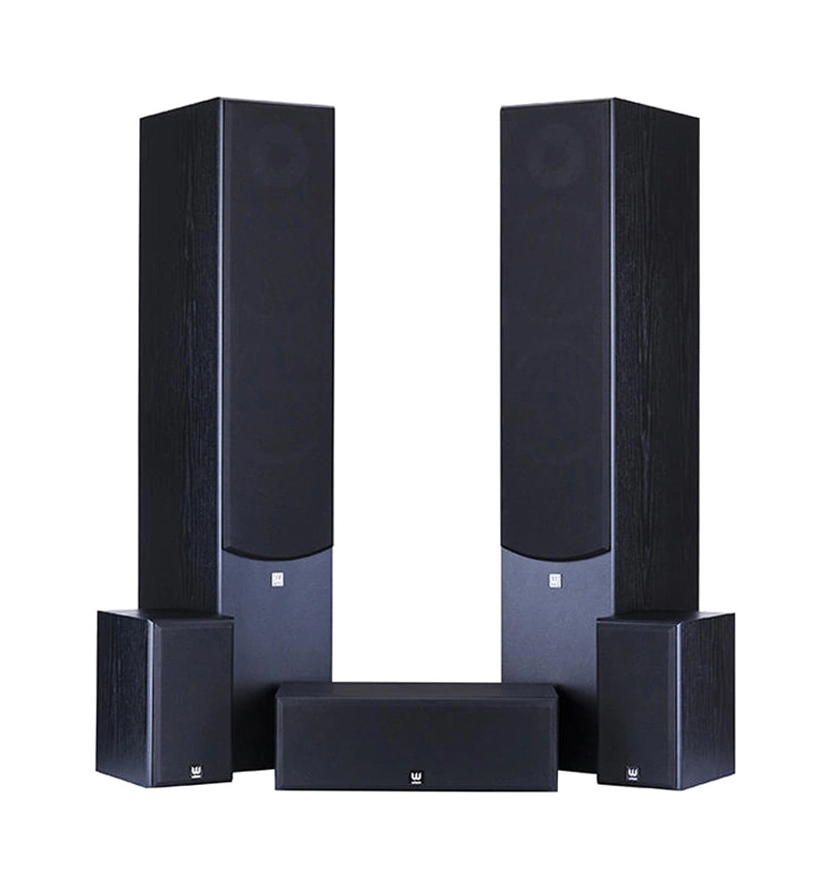 Zestaw składa się z dwóch kolumn podłogowych, dwóch kolumn podstawkowych oraz głośnika centralnego, tworzący zrównoważone brzmienie.