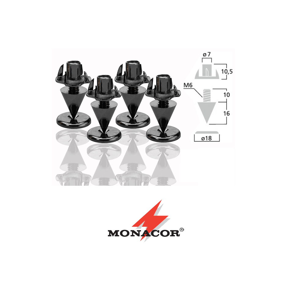 Każdy system audio zyska znacznie dzięki zainstalowaniu kolców Monacor. Z jednej strony zniwelują one drgania przenoszone na podłoże co poprawi osiągi zestawu, a z drugiej nadadzą szczególnego, dizajnerskiego stylu i profesjonalnego wyglądu.