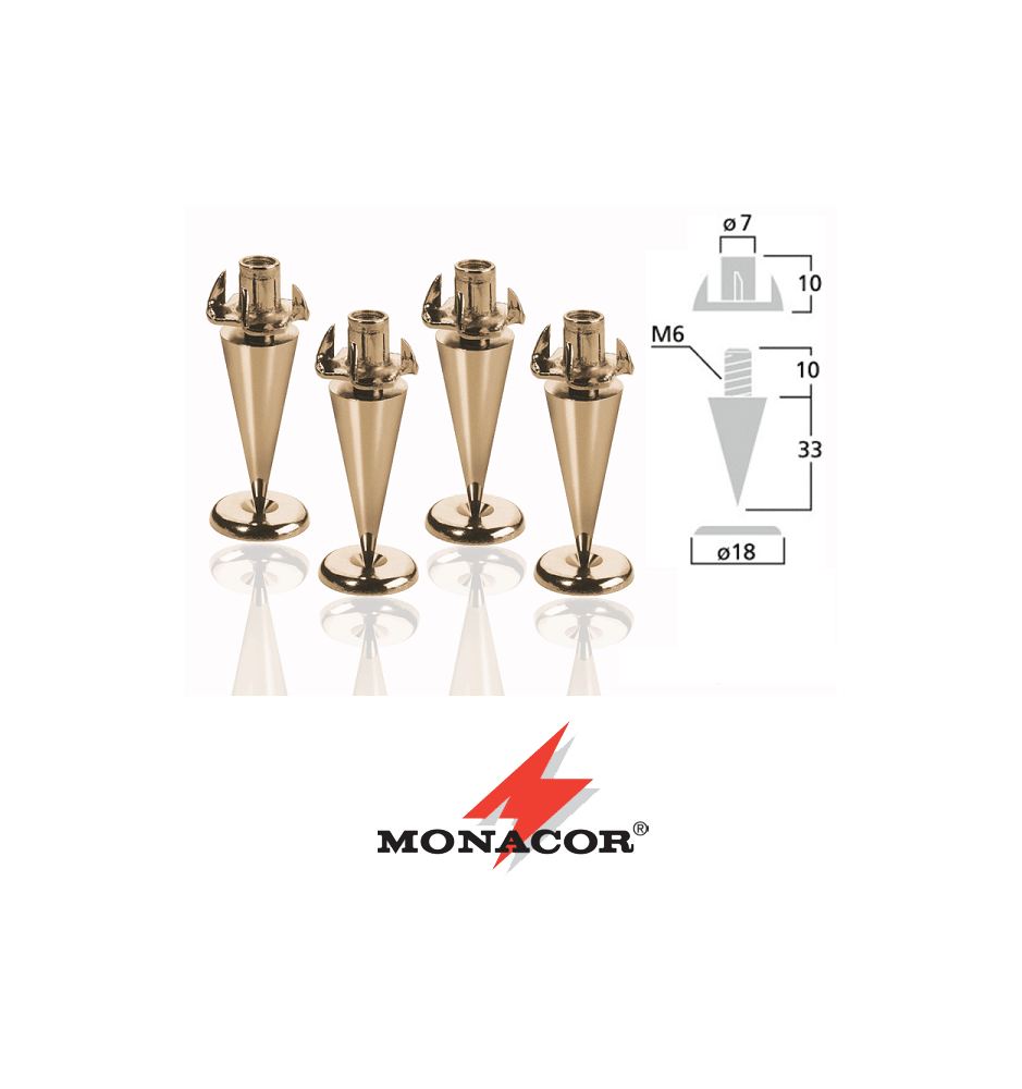 Każdy system audio zyska znacznie dzięki zainstalowaniu kolców Monacor. Z jednej strony zniwelują one drgania przenoszone na podłoże co poprawi osiągi zestawu, a z drugiej nadadzą szczególnego, dizajnerskiego stylu i profesjonalnego wyglądu.