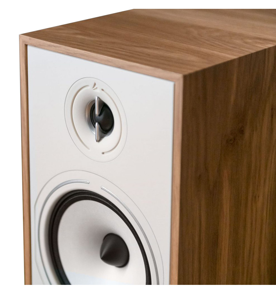 Front kolumny został pozbawiony wszelkich zbędnych elementów, dzięki montażowi głośników bez widocznych śrub, zachowując niezwykle estetyczny wygląd obudowy. Uzupełnienie stanowi idealnie dopasowana maskownica mocowana magnetycznie. Wnętrze obudowy wzmocniono panelami z MDF, a głośniki odsprzęgnięto za pomocą pianek EVA, zmniejszając podbarwienia dźwięku oraz szumy.