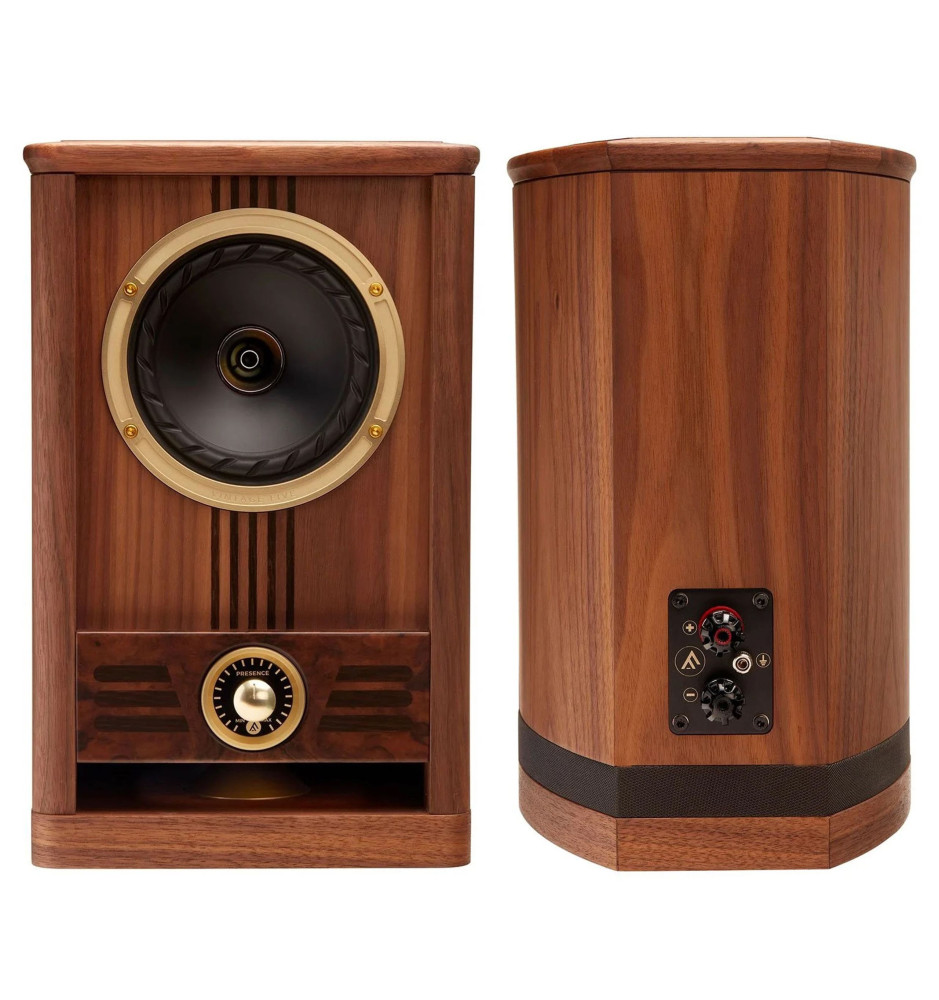 Kompaktowe podstawkowe kolumny głośnikowe, stanowiące połączenie klasycznego wzornictwa audio z nowoczesnymi technologiami.