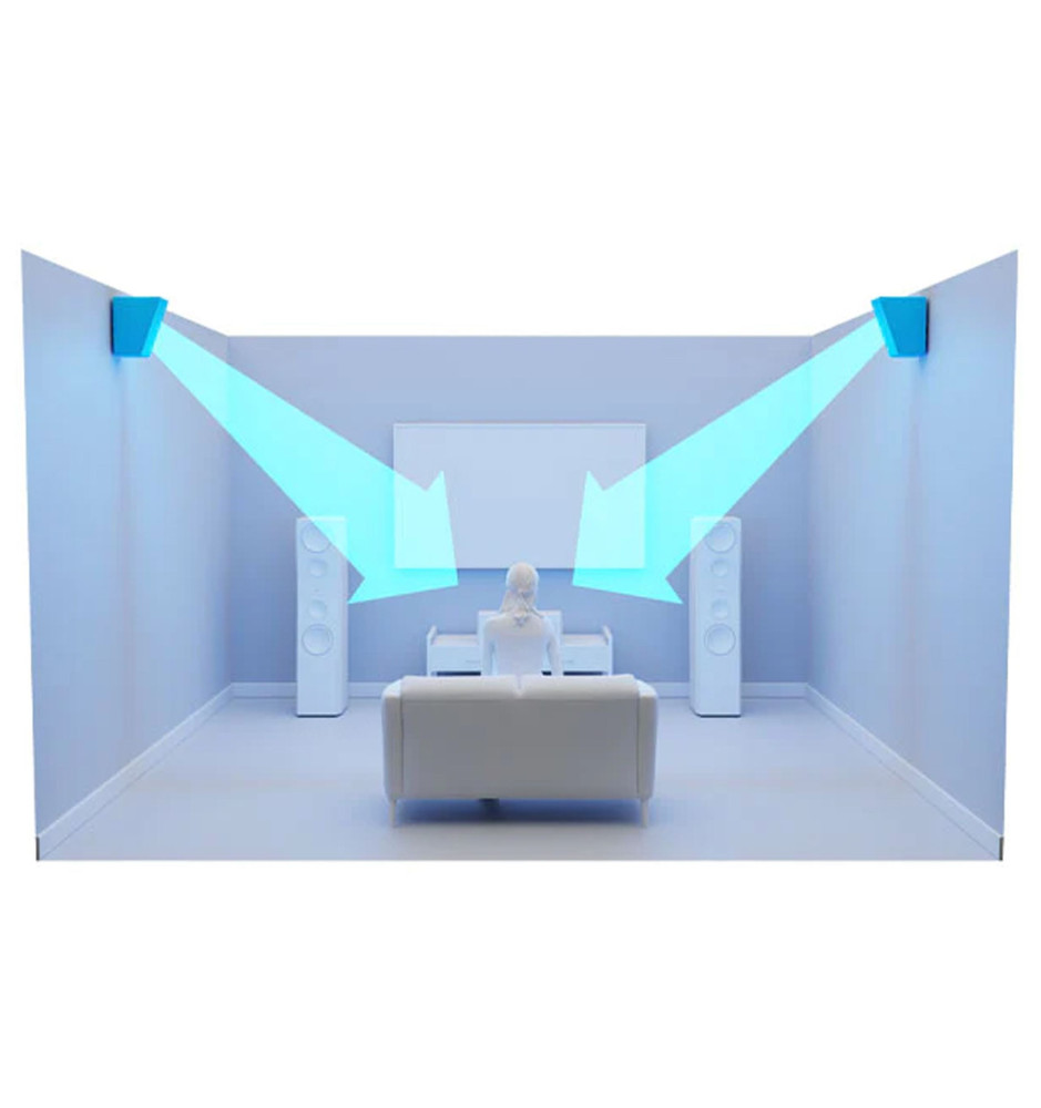 Kolumny SVS Ultra Elevation posiadają sfazowaną przegrodę przednią i zamontowane w jednej płaszczyźnie przetworniki, co pozwala zredukować dyfrakcję krawędziową oraz poprawia charakterystykę wysokich częstotliwości poza osią. Wielokątne wsporniki ścienny i sufitowy umożliwiają montaż głośników w dowolnym kierunku, również nad głową.