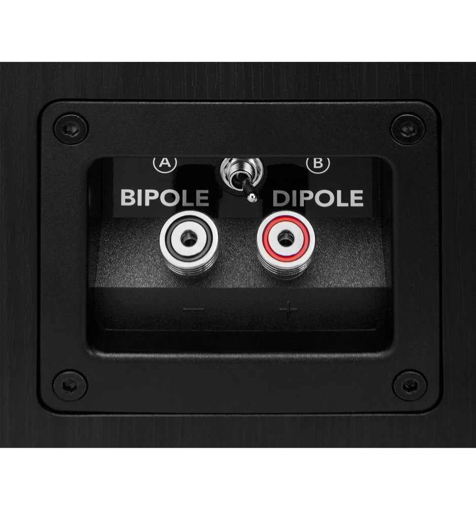 Kolumna surround Triangle Borea BRS1 oferuje możliwość wyboru trybu pracy, dzięki przełącznikowi umieszczonemu z tyłu każdego głośnika. Możesz wybrać tryb bipolarny dla jednolitego dźwięku surround 5.1 lub tryb dipolarny dla optymalnej przestrzenności w rozszerzonych konfiguracjach.