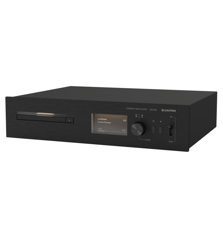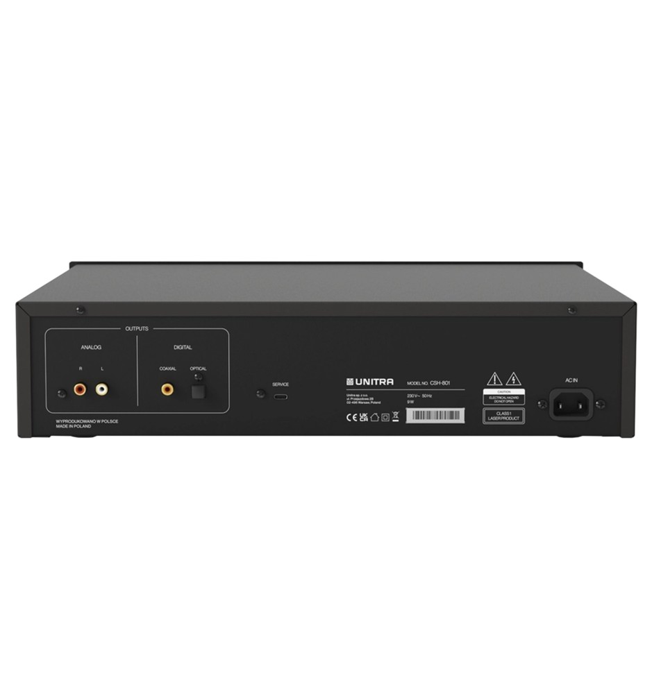 Unitra CSH-801 to wysokiej klasy odtwarzacz płyt CD klasy Hi-Fi, zaprojektowany dla miłośników doskonałego brzmienia i ponadczasowego wzornictwa. Urządzenie łączy nowoczesną technologię cyfrową z estetyką inspirowaną sprzętem audio z lat '70, oferując wbudowany przetwornik DAC 32-bit / 384 kHz, funkcję transportu cyfrowego oraz unikalny wyświetlacz E Ink. Solidna metalowa konstrukcja, aluminiowy front oraz dopracowane detale sprawiają, że CSH-801 jest nie tylko źródłem dźwięku, ale również wyjątkowym elementem systemu stereo.