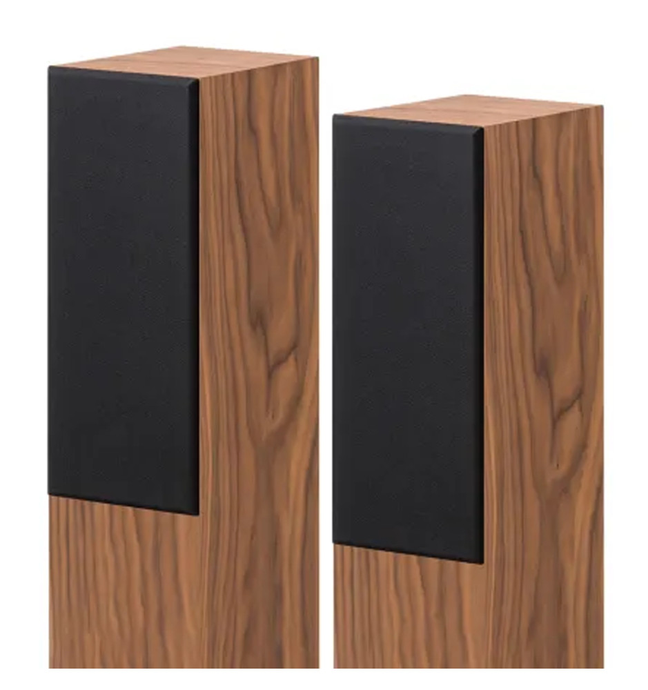 Obudowa wykończona jest w stylowym, subtelnym stylu, który pasuje do każdego wnętrza. Na froncie nie ma widocznych śrub, a magnetyczne maskownice podkreślają minimalistyczny wygląd kolumn. Konstrukcja z MDF minimalizuje niepożądane drgania, co przekłada się na czystość brzmienia i pełne wykorzystanie potencjału przetworników. Kolumny wyposażono w pozłacane terminale, co zapewnia stabilne i bezstratne połączenie.