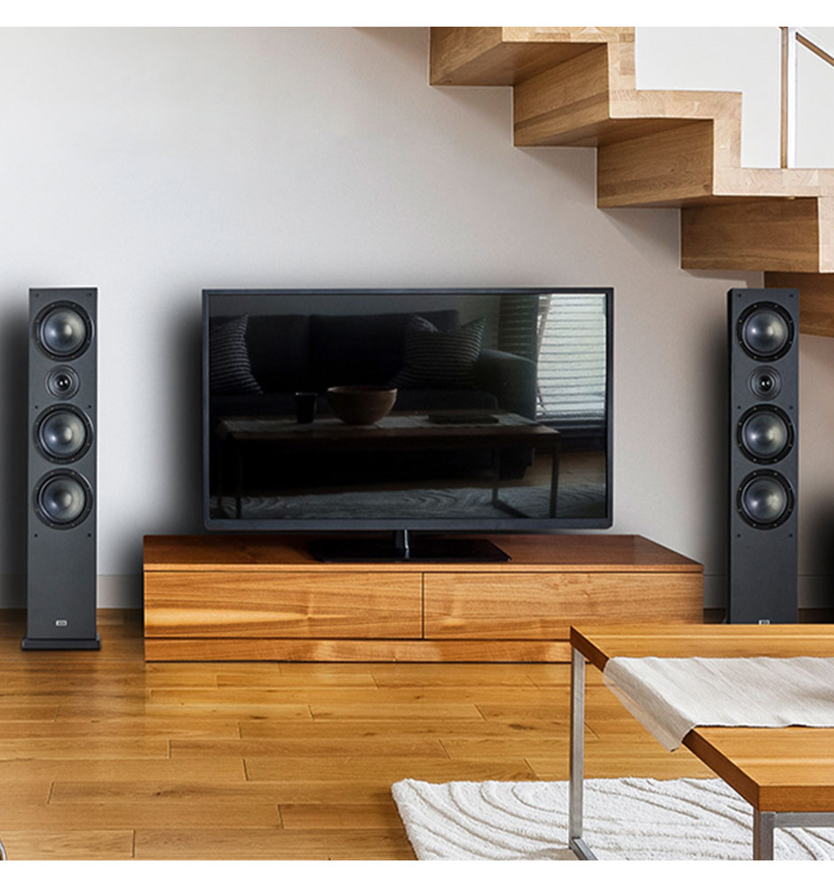 Zaawansowana, trójdrożna podłogowa kolumna głośnikowa, która łączy elegancki design z najwyższej jakości dźwiękiem, idealna zarówno do systemów stereo, jak i kina domowego.