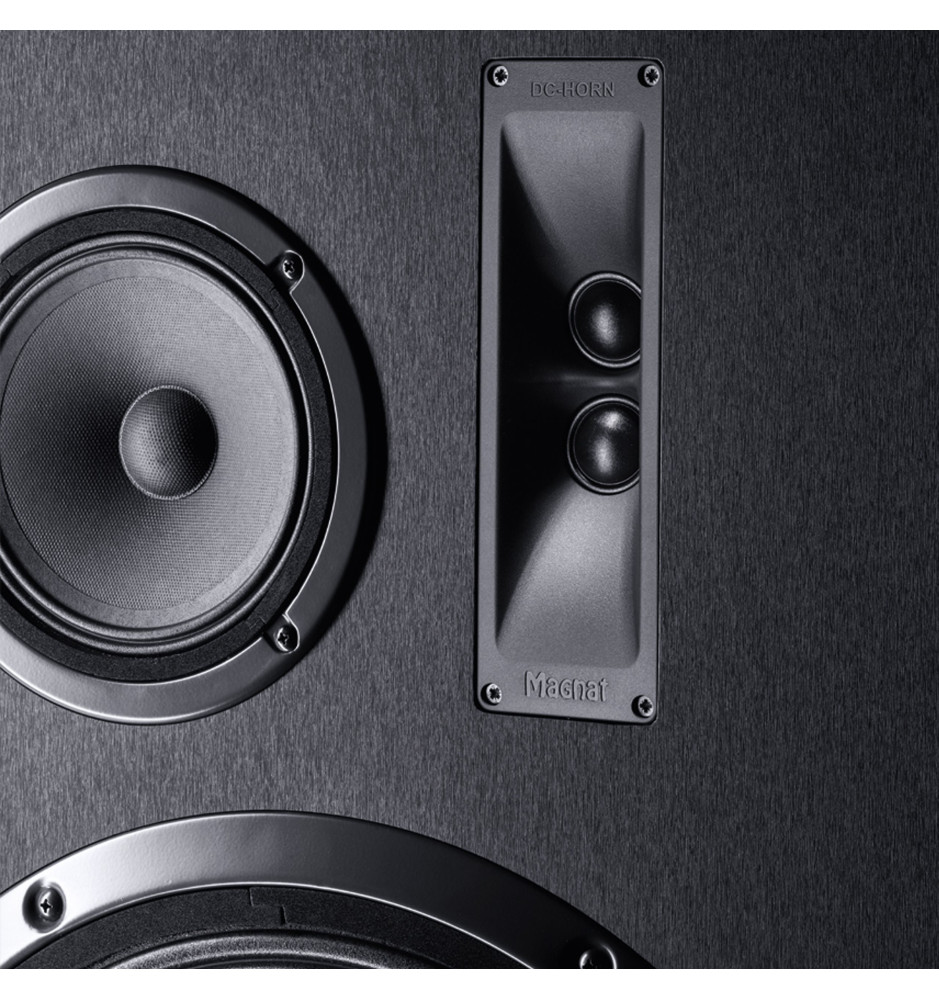 Głośnik wysokotonowy z dwoma 25-milimetrowymi kopułkami oraz falowodem typu horn gwarantuje naturalną i czystą reprodukcję wysokich częstotliwości. Brzmienie jest otwarte, przestrzenne i szczegółowe – nawet przy wysokim poziomie głośności.