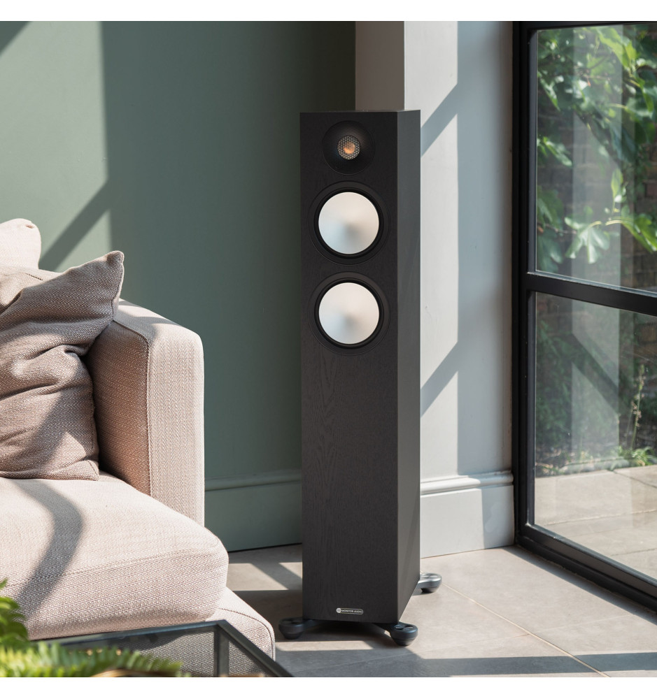 Flagowy model podłogowych kolumn głośnikowych z serii Monitor Audio Bronze 7G o efektownym designie, oferujący wypełniający pomieszczenie, przestrzenny dźwięk z pełnym i potężnym basem.