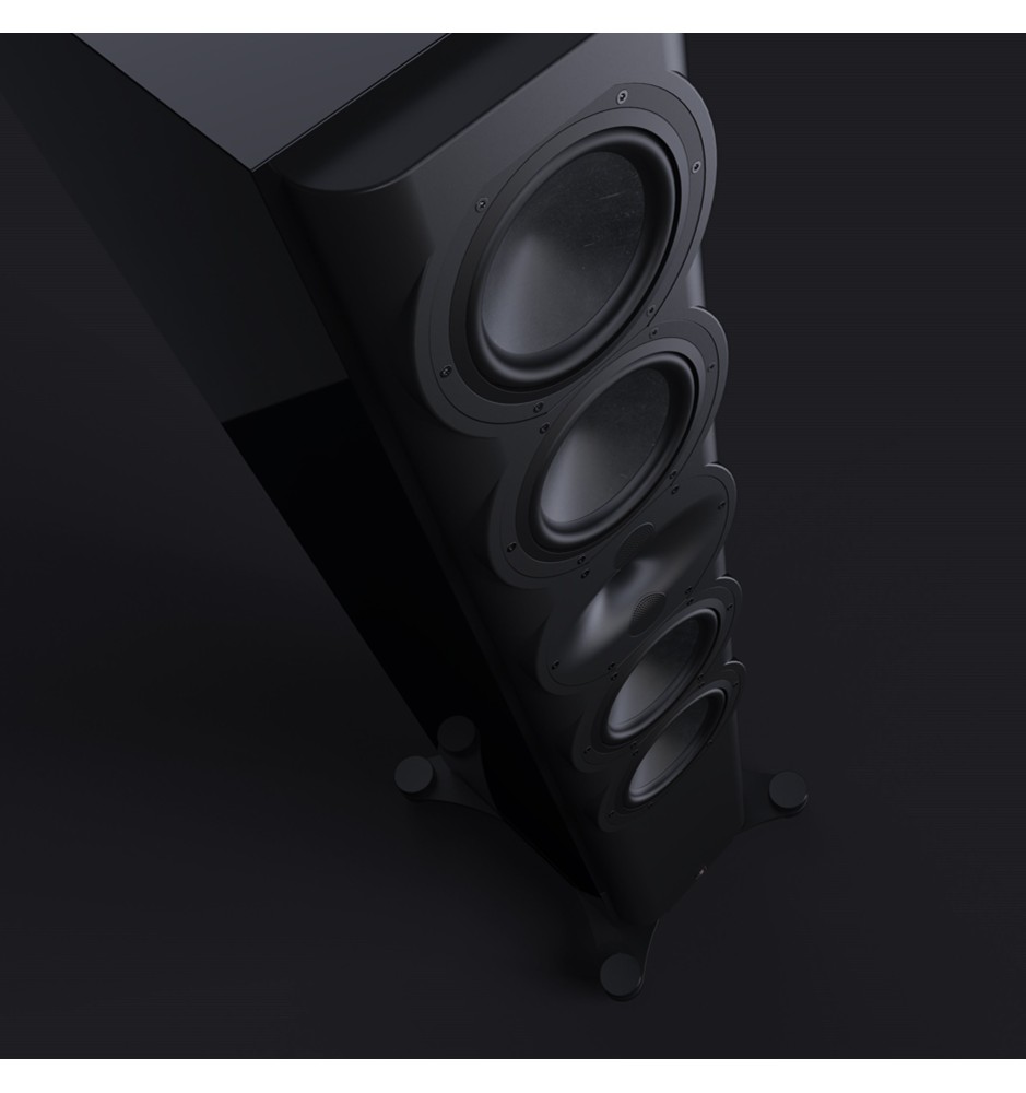 Kolumny wyposażono w cztery 165-milimetrowe przetworniki niskotonowe z membranami HPF z kompozytu włókna węglowego. Zapewniają one głęboki, szybki i doskonale kontrolowany bas, który sprawdzi się zarówno w muzyce, jak i w kinie domowym, oferując realistyczne odwzorowanie efektów dźwiękowych. Obudowa R7t została zaprojektowana z myślą o maksymalnej sztywności i eliminacji rezonansów. Wykorzystuje wielowarstwową konstrukcję oraz precyzyjne wzmocnienia wewnętrzne, co przekłada się na czystszy, bardziej neutralny dźwięk oraz wyjątkową stabilność pracy przetworników.