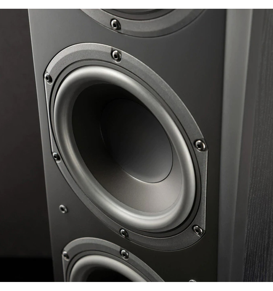 Każdy z trzech głośników niskotonowych posiada własny 2-calowy port basowy. Pozwala to zachować smukłe wymiary kolumny podłogowej, zapewniając niesamowite wrażenia odsłuchowe w pełnym zakresie z doskonałymi niskimi częstotliwościami. Przetworniki zaprojektowano, aby oddawały najdrobniejsze szczegóły i realizm dźwięku muzyki oraz filmów.