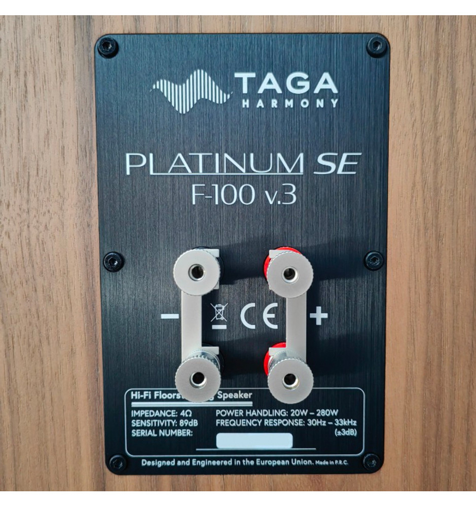 Taga Harmony Platinum F-100 SE v.3 to trójdrożny model z czterema przetwornikami oraz portem bass refleks skierowanym do dołu, zaprojektowany z zachowaniem najwyższych standardów w celu zapewnienia cieszącej oko elegancji oraz precyzyjnego i mocnego dźwięku.